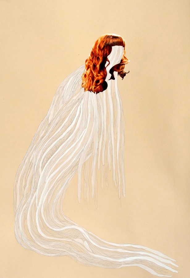 Non-Gender Specific Apparition #6, Gouache, graphite, & collage on cotton paper, 30H x 22.25W" 2016